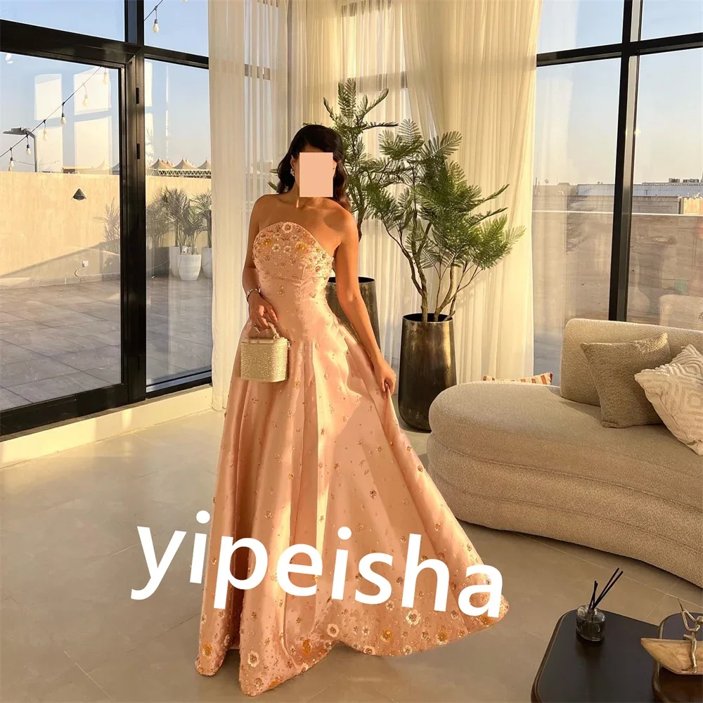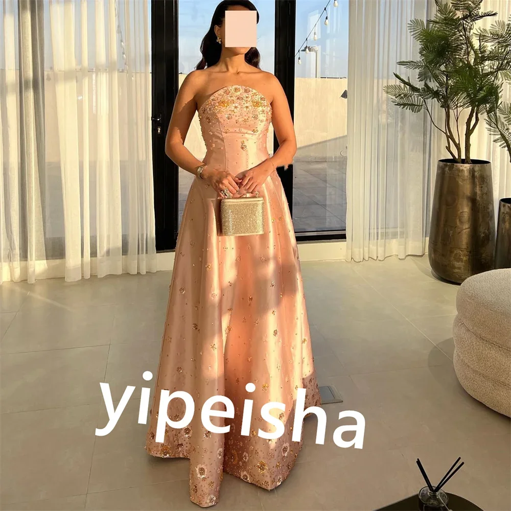CustomizedS Sequined Pleat Beach A-line Scalloped Bespoke Occasion Gown Long Dresses