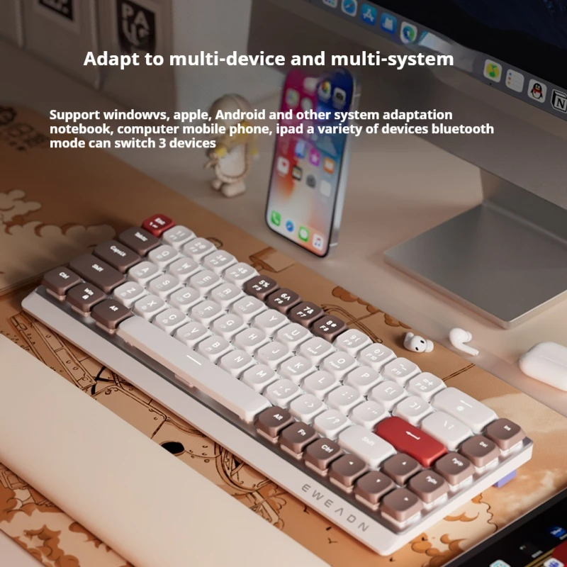 EWEADN MK68 84 Mechanical Keyboard Low Profile Switch 2.4G/Bluetooth/Wired Office Mute Tablet Laptop PC Light Portable Faster