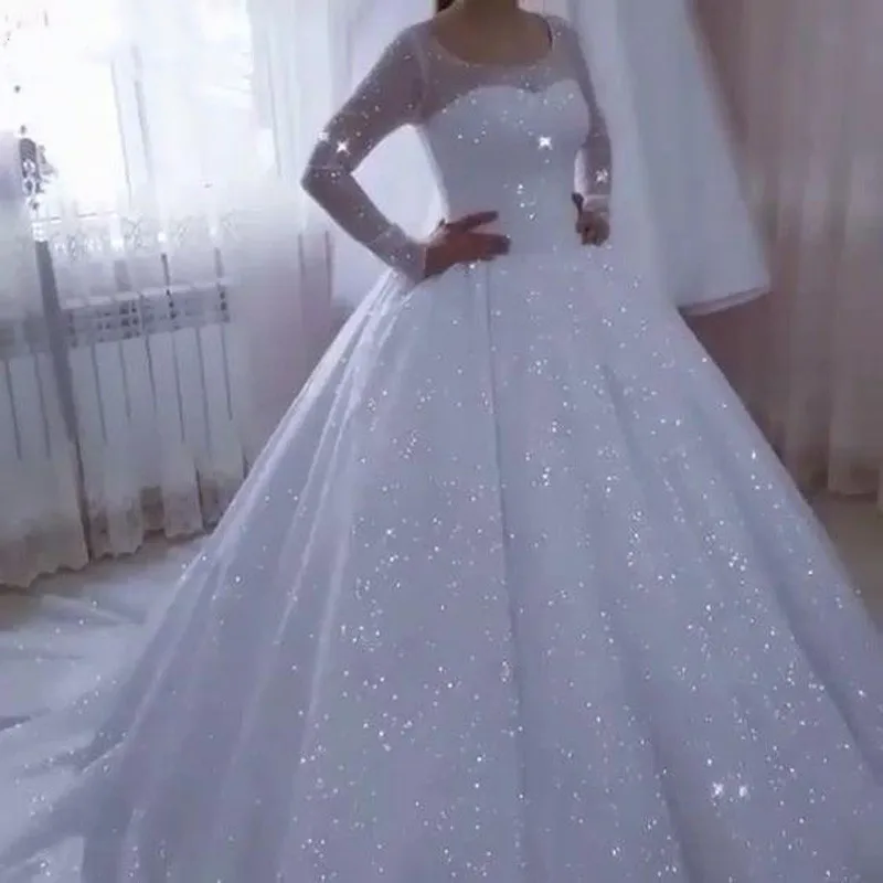 Gorgeous A-line Wedding Dresses Glittering Princess Bride Gowns Round Neck Formal Beach Party Vestidos De Novia Robe Mariée