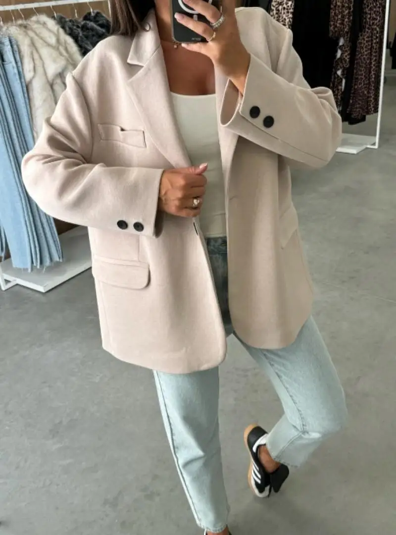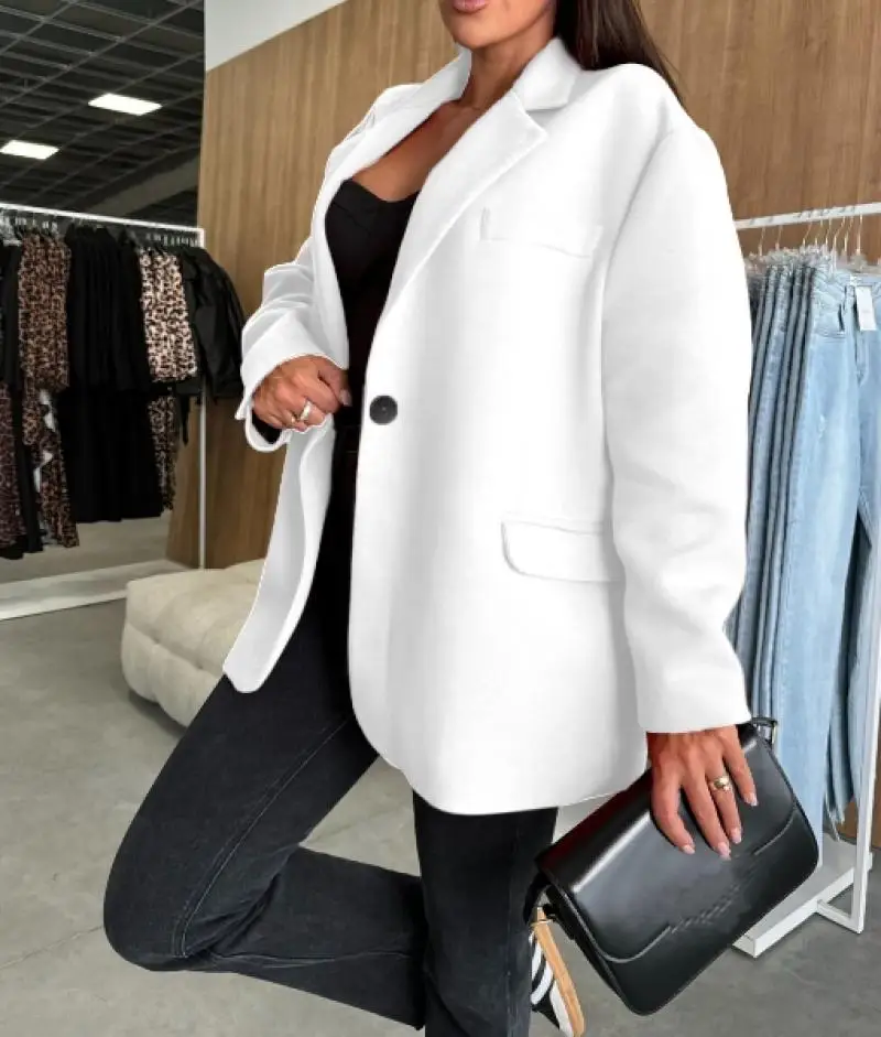 Urban Women’s Temperament Suit Jacket Autumn Solid Color Lapel Long Sleeved Button Pocket Fashion Commuting Woolen Suit Jackets