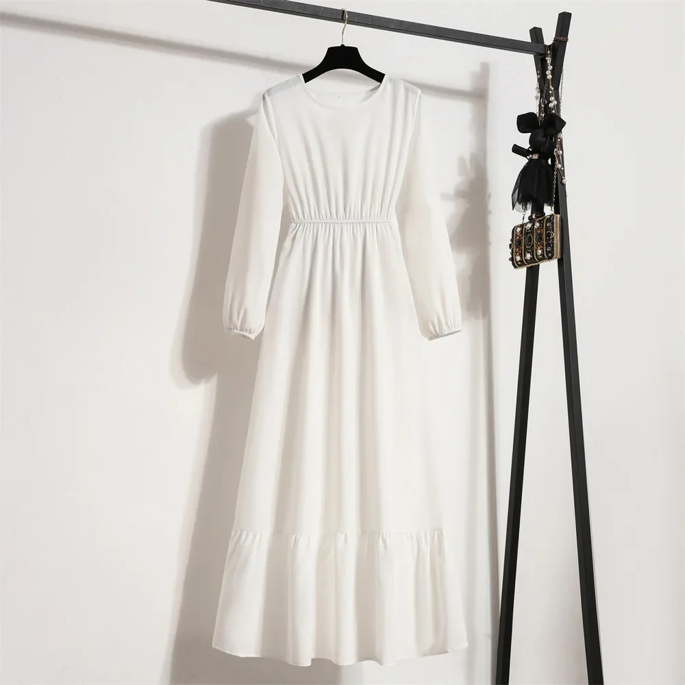 Women Eid Muslim Abaya Dubai Ruffles Spliced Arab Puff Sleeve Morocco Tight Waist Vestidos Solid Color Dress Casual Slim Fit