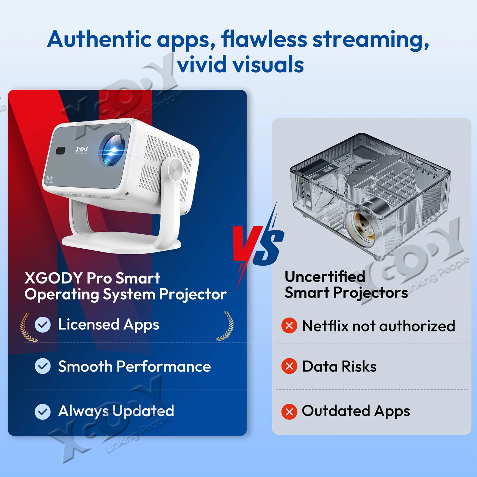 ✅️【Officially-Licensed NetfIix Projector】XGODY Gimbal N6 smart 4K projector is preloaded with officially licensed NetfIix, Prime Video and Youtube. With just one click, we could reach over 50,000 FHD videos. Moreover, we could download our favorite apps in the ‘APP STORE’. No need to fuss with connecting other devices like TV stick.
